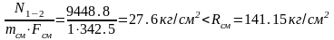 Проверка на смятие подушки раскосом с усилием N1-2 = 9448.8 кг.