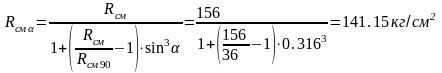 Rсм = 141.15 кг/см2 – расчетное сопротивление смятию древесины лиственницы под углом α = 18.42˚.