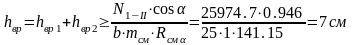 Принимаем hвр1=4cм, hвр2=6.5 см при условии, что , hвр2=6см ≤1/3 h=1/3∙25=8.333см и разность глубин врезок не менее 2см.