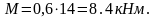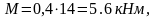 Опорний момент ригеля по грані крайньої колони по схемі завантаження 1+4 і вирівняній епюрі моментів: