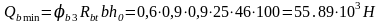 Площа перерізу консолі біля грані поздовжньої арматури по формулі при .