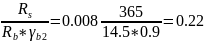 ξ =μ*(RS/RB*γb2)=0.01*(365/14.5*0.9)=0.279