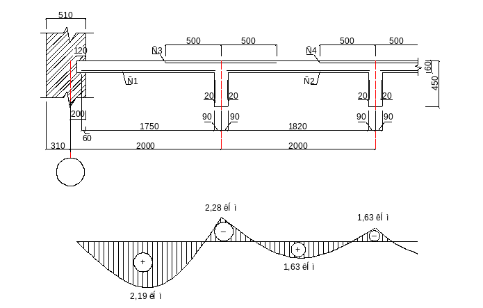 Второстепенные балки монолитного ребристого перекрытия по своей статистической схеме представляет собой многопролётные неразрезные балки