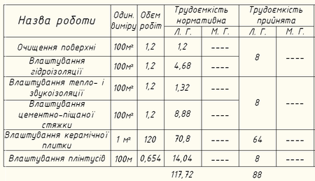 На основі підрахованих об’ємів робіт складаємо калькуляцію витрат праці на весь об’єм робіт: