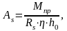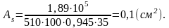 Если значение Аs получается с отрицательным знаком, то по расчёту продольная арматура не требуется. Её устанавливают исходя из минимального коэффициента армирования μ = 0,01.