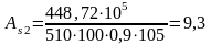 Требуемая площадь сечения продольной арматуры в соответствующих сечениях при η = 0,9: