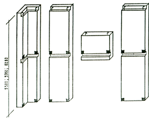 2.6.1. Выше отмечено, что каркас системы КУБ-2,5 предполагает применение для наружных ограждающих конструкций низкомарочных материалов, эффективными ограждающими функциями – поэтому конструкции, выполненные из этих материалов д.б., выполнены, как правило, навесными. В качестве примера разработаны керамзитобетонные панели, дающие как вертикальную полосовую разрезку фасадов зданий, так и комбинированную: для первого случая – вертикальные панели высотой в 2 этажа, для второго – горизонтальные, располагающиеся между вертикальными, служащими стойками фахверка. Набор панелей, кроме того, предусматривает угловые изделия, подоконные, стенки лоджий и т.п.