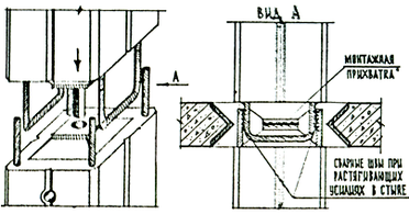 3.1.6. Стык колонн предусматривает принудительный монтаж, при котором фиксирующий стержень нижнего торца верхней колонны должен войти в патрубок верхнего торца нижней колонны. Сварка арматуры выполняется при условии растягивающих усилий в стыке.