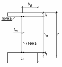 Отношение расчетной ширины свеса поясного листа Bef к его толщине tf не должно превышать для двутаврового сечения величины