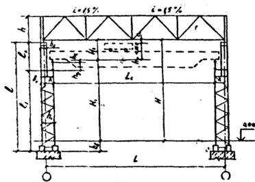 Высота цеха от уровня пола до низа ригеля Н=Н1+Н2,