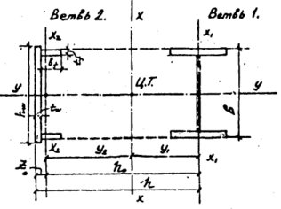 Где M1, M2 - абсолютные величины расчетных изгибающих моментов, догружающих подкрановую и наружную ветви;