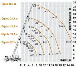 Высота подъема на стреле с гуськом максимальная, м - 29,1