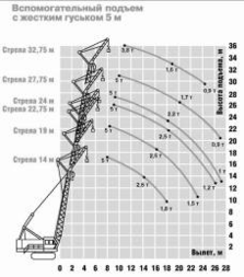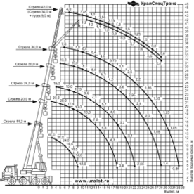 | Грузовысотные характеристики автокрана КС-65719–1К «Клинцы» | |