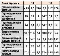 Табл. 5 «Основные технические данные и характеристики крана КС-65719–1К «Клинцы»»