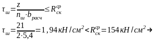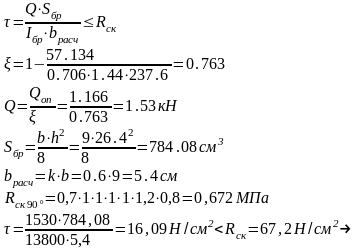 прочность клеевого шва по касательным напряжениям обеспечена с большим запасом прочности.