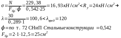 Проверяем стальные накладки на сжатие по устойчивости в плоскости перпендикулярной плоскости планки: