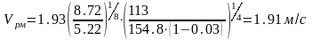 Vрм - средняя скорость течения в русле под мостом после завершения общего размыва