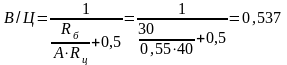 1. Определяем В/Ц по соотношению между прочностью и активностью