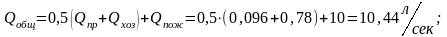 Если расход воды на противопожарные цели превышает потребности на производственные и хозяйственно-бытовые, то расчет диаметра трубопровода может быть произведен только исходя из противопожарных нужд. Если же не превышает, то в расчет принимается: