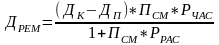 | месяц | Дк | Д2 | Д1 | Д = Д1∙(1 - Д2/Дк) | Дн = (Дк-Д2)∙0,03 | Псм | Pчас | Дп = Д1 + Д2 + Дн | Дрем=((Дк-Дп)·Псм·Рчас)/(1+Псм·Рчас) | ||||||||