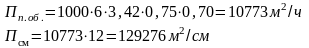 Производительность при 6 проходах со скоростью 3 км/ч:
