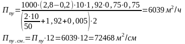 Производительность при 5 проходах со скоростью 5 км/ч: