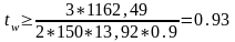 Требуемая толщина из условий прочности стенки на срез определяется по формуле 2.6: