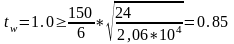 Для обеспечения местной устойчивости стенки без укрепления продольным ребром жесткости в балки высотой до 2 м и должно соблюдаться условие