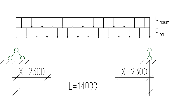 Расчетная нагрузка на единицу длины балки определяется по формуле 1.2: