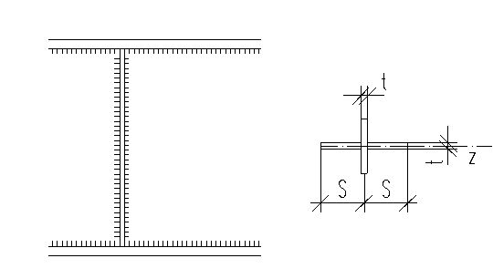 В целях унификации конструкции высота балки должна быть кратной 100 мм. Высота стенки предварительно принимается на 4 или 6 см меньше высоты балки с учетом сортамента прокатной толстолистовой стали за вычетом 10 мм на фрезеровку кромок.