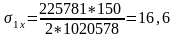 Подобранное сечение балки необходимо проверить на прочность. По назначенным размерам балки вычисляют фактические геометрические характеристики поперечного сечения. Момент инерции сечения: