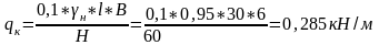 q = f*н * qo * Cx * Kп * B = 1,4 *0,95* 0,30 * 0,8 * 0,678 * 6 = 1,3 кН/м