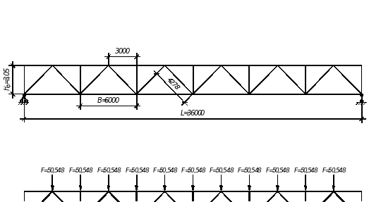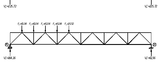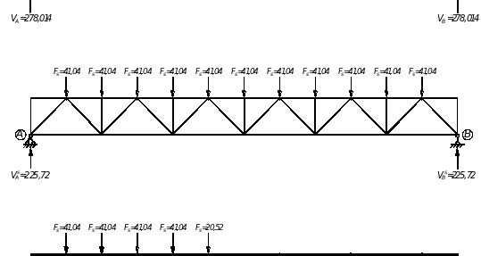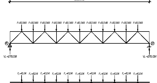 Рисунок 2 – Расчетная схема при расчете стропильной фермы на постоянную нагрузку