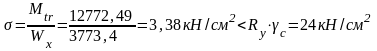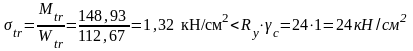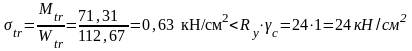 Проверяем прочность сечения траверсы по нормальным напряжениям от действия первой комбинации усилий.