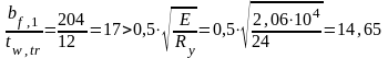 т.е. условие не выполняется, следовательно увеличиваем толщину полки до 14 мм.
