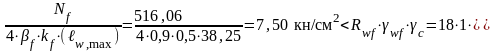 , т.е. условие выполняется, прочность горизонтального сварного шва обеспечена.
