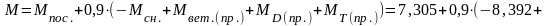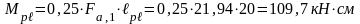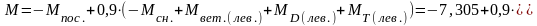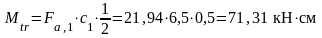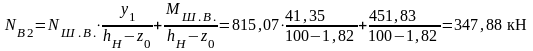 Расчетная комбинация усилий для шатровой ветви в сечении 1-1: