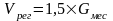 Резервуар мокрого хранения соли принимаем из расчета месячного расхода с запасом в 50 % согласно указаниям СНиП