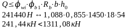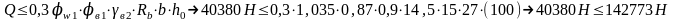 Проверяем условие обеспечения прочности по наклонной полосе между наклонными трещинами при действии поперечной силы Q = 40,38 кН. С помощью формулы: