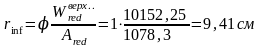 Теперь определяем величину r – расстояние от центра тяжести приведенного сечения до ядровой точки, наиболее удаленной от растянутой зоны, трещинообразование которой проверяется.