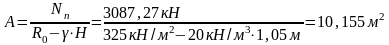 Определяем требуемую площадь подошвы (без поправок на ее ширину и заложение):