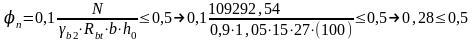 - коэффициент, учитывающий влияние продольных сил. Определяется по формуле: