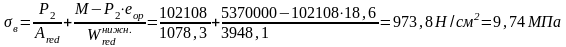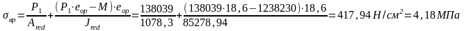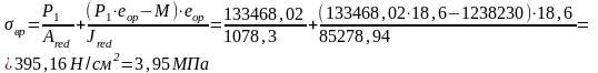 Вместо величины N подставим в формулу значение усилия обжатия с учетом коэффициента точности натяжения (но без учета потерь!) (см. выше):