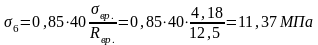 - максимальное нормальное напряжение в бетоне от внешней нагрузки и величины усилия предварительного напряжения. Определяется по формуле: