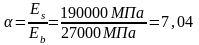 Определим отношение модулей упругости бетона и арматуры: