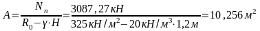 Проверяем величину требуемой площади, с учетом изменения глубины заложения: