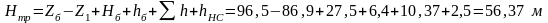 При режиме максимального транзита воды в бак (этот режим является диктующим для выбора насоса) требуемый напор насоса Hтр , м определяем