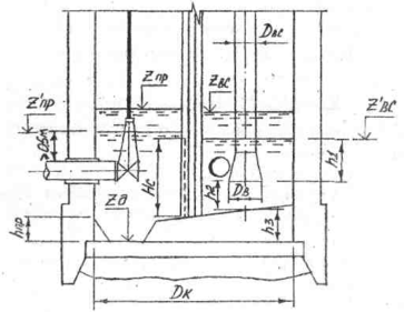 Отметку уровня воды во всасывающем отделении Z'BC, м, при аварийном режиме работы водозабора определяем по формуле