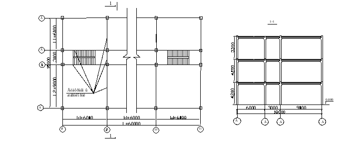 Трехэтажное многопролетное промышленное здание с высотой 1и 2 этажа 4,2м, а 3 - 3,3м. ширина продольных и поперечных пролетов 6,0м. Длина здания 60м, ширина – 18м.