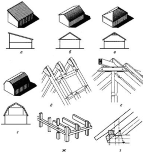 а, б, в - с одно-, двух- и четырехскатной крышей;